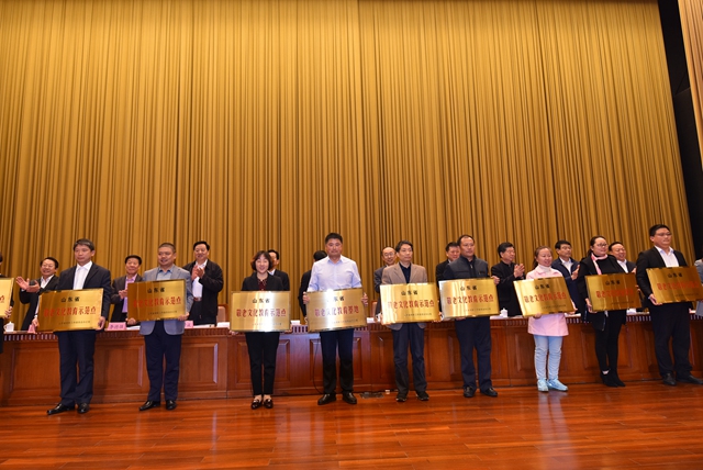 庆祝老年节大会现场--给山东省长寿之乡授牌