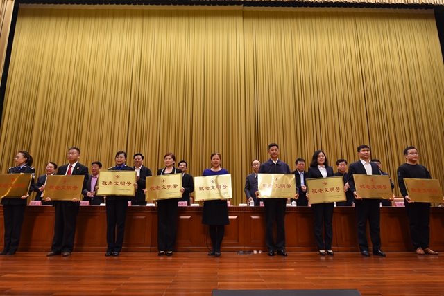 庆祝老年节大会现场--给山东省敬老文明号颁发奖牌