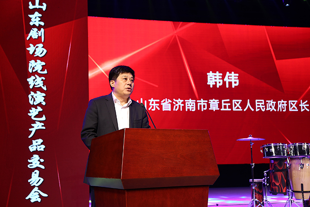 为全面贯彻落实党的十九大精神,加快新旧动能转换,实现产业优化升级,推动演艺产业高质量发展,开创新时代现代化强省建设新局面,根据《山东省新旧动能转换重大工程实施规划》、《山东省文化创意产业发展规划》重大项目相关部署,推动山东剧场院线章丘总部基地重大项目建设,“相约文博会——首届山东剧场院线演艺产品交易会”,作为第七届山东文化产业博览交易会系列活动之一,于2018年10月24日在济南章丘盛大开幕。开幕式上,济南市章丘区区委副书记、区长韩伟致辞。