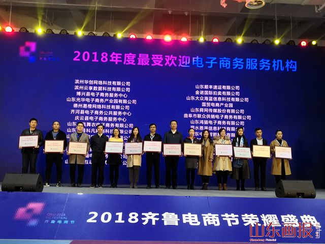 2018年度“山东优秀互联网品牌”、“最受欢迎电子商务服务机构”、“网络诚信企业”、“山东电子商务双创之星”、“山东省电商与物流行业创新领军人物”等获奖企业和个人也受到了表彰。