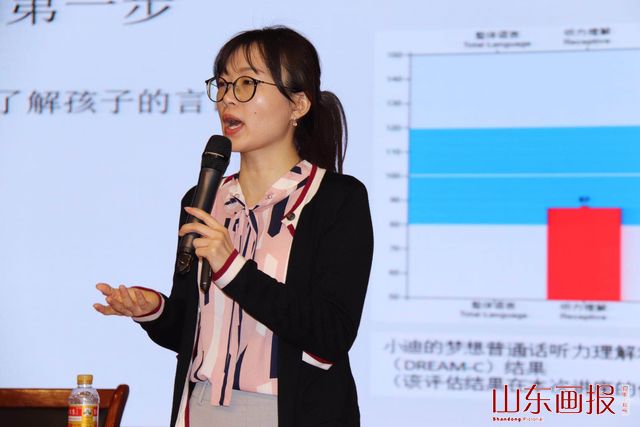 在讲座当中,香港安安国际自闭症教育基金会教学主任刘美老师、曾晖老师先后向听众讲授了《如何促进自闭症儿童的社会性发展》、《儿童言语语言问题分析及干预策略》。通过分析自闭儿的社交沟通表现和对不同能力阶段儿童的个案分析来透视儿童社会性发展和语言发展的规律,解决儿童社会沟通与语言交流的问题。