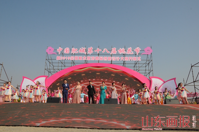 文艺演出在歌舞《春天的礼赞》中拉开帷幕,节目甫一亮相便抓住观众眼球,让人怦然心动;元气少女组合AK98少女队带来歌舞《桃花笑》燃爆现场;小品《桃花开了》让游客捧腹欢笑的同时不禁为桃农对肥桃的辛勤付出点赞;诗词歌舞秀《千年游》把《左传》搬上舞台,让游客在孩童歌舞表演中感受千年前的古训、品味古老智慧;更有“甜歌皇后”李玲玉带来《天竺少女》、《春暖花开》,带来对肥城的真挚祝福,把演出推向高潮;著名词曲作者、歌手陈小熊专门创作了肥城桃花节专属音乐作品——《肥城四月好风光》,为桃花节奉献了经典之作;在外追梦肥城人王紫格带来精彩演出,为家乡送福;节目最后,台上台下、演员与观众以快闪形式合唱《我和我的祖国》,献礼新中国70岁华诞。整台演出集本土元素与现代流行元素于一体,以艺术美感、语言情感、场景实感和青春动感带给游客耳目一新、与众不同的视听享受,让游客赏花看景品民俗,嬉戏游乐思乡愁。