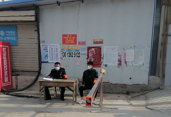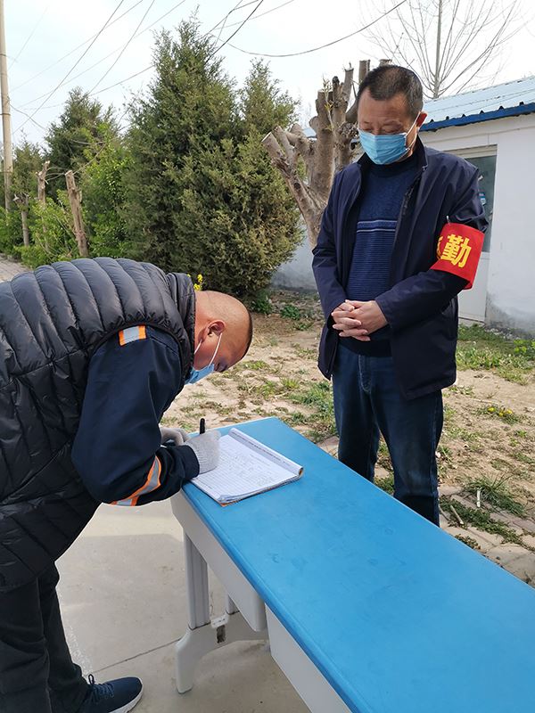 省派“第一书记”孔祥军同志在李巍村执勤卡口认真做好人员出入登记检查工作