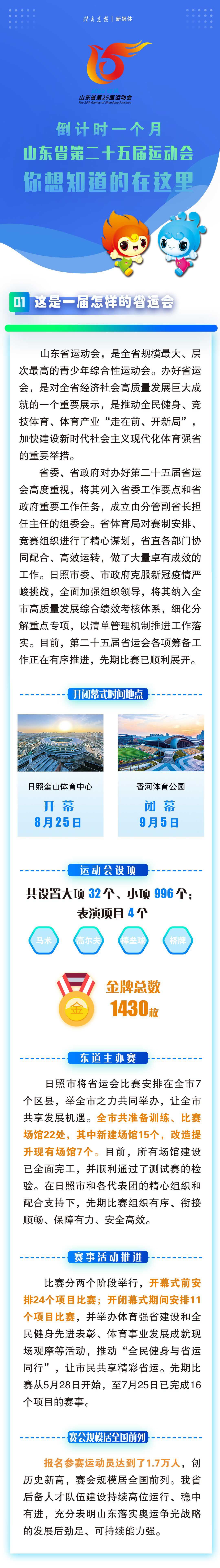 山东省第二十五届运动会8月25日日照开幕