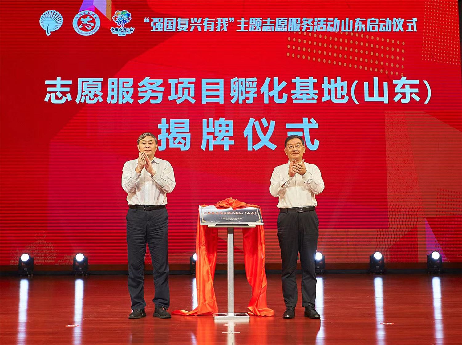 中国志愿服务联合会常务副会长孙志军、山东省委宣传部副部长孙文利为志愿服务项目孵化基地(山东)揭牌